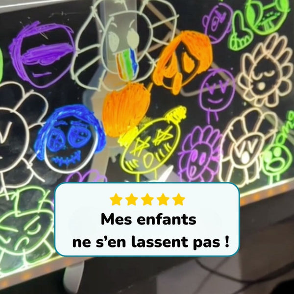 ✅ Oui, absolument ! Le LumiBoard™ est conçu avec des matériaux non toxiques, sûrs et durables, parfaits pour une utilisation par les enfants. Les LED intégrées ne chauffent pas, garantissant une utilisation 100 % sécurisée.